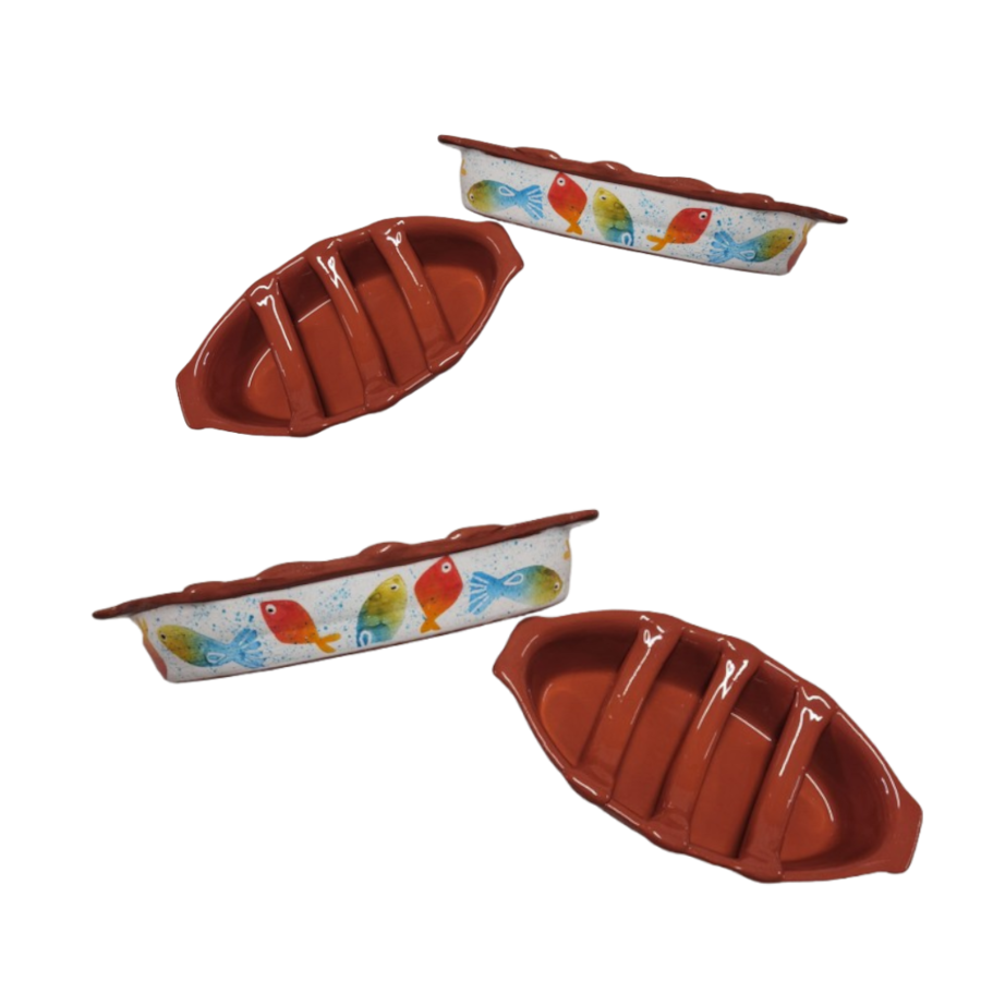 Assa chouriço canoa em cerâmica pintado à mão decoração peixinhos (52), disponível em dois tamanhos, selecione o tamanho pretendido na opção de escolha abaixo: