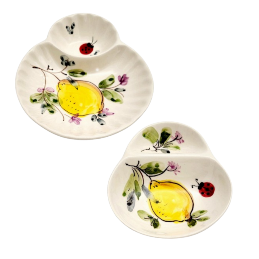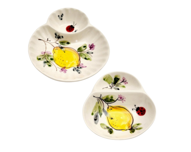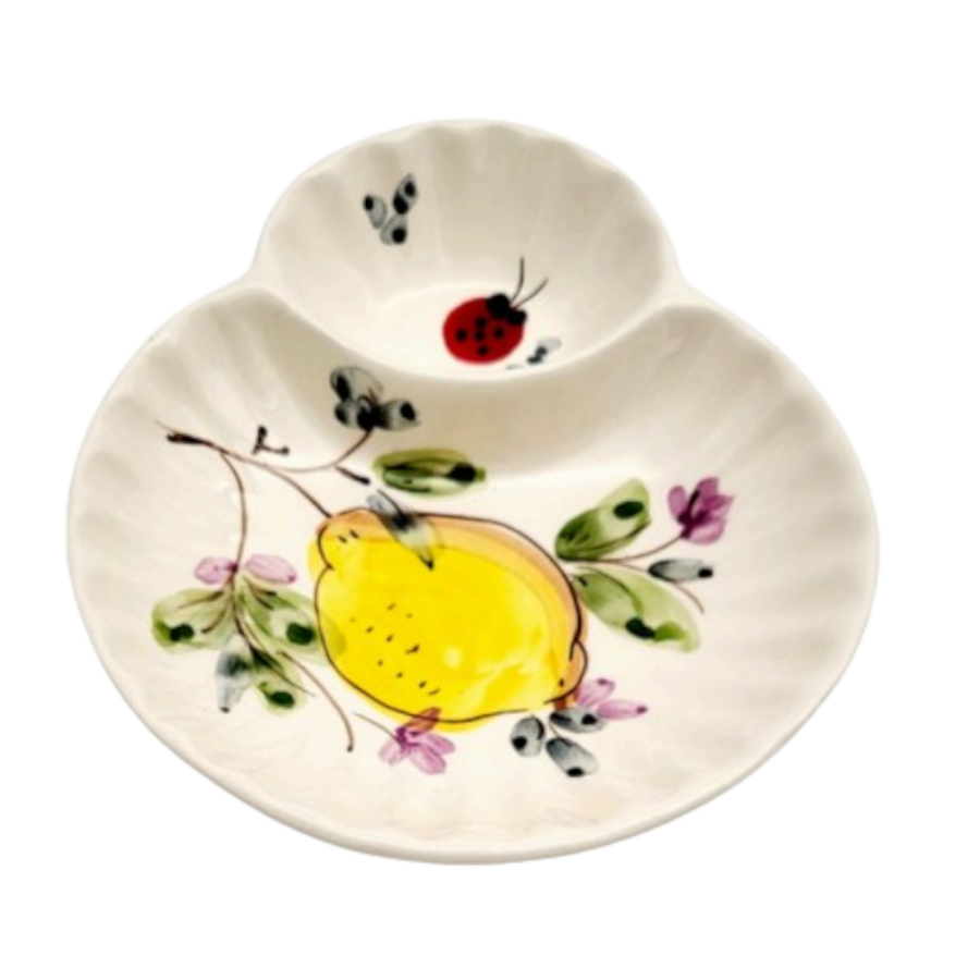 Azeitoneira em faiança pintada à mão, decoração Limões, disponível em dois tamanhos, selecione o tamanho pretendido na opção de escolha abaixo