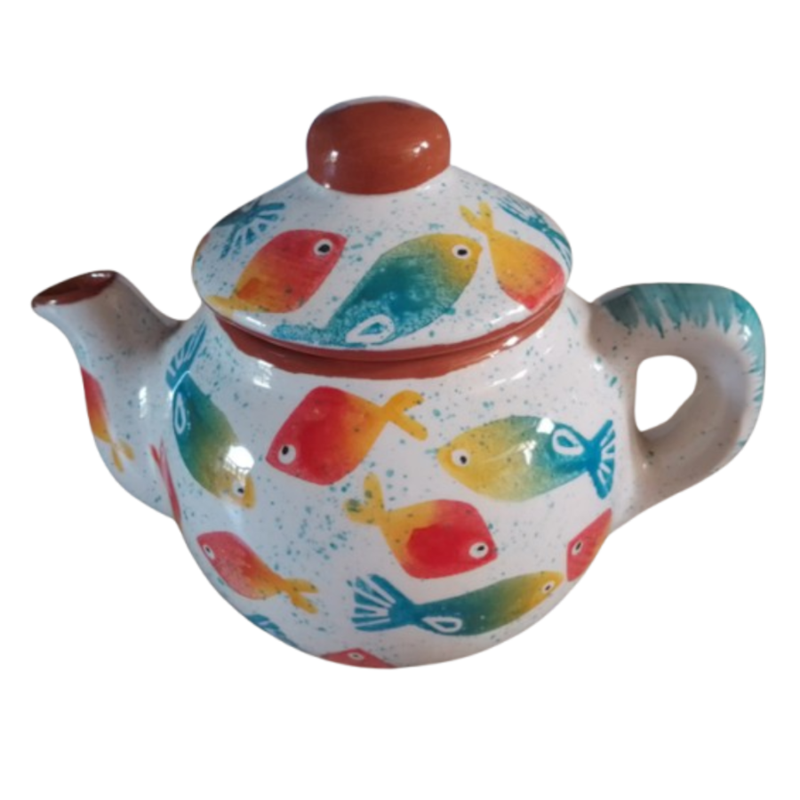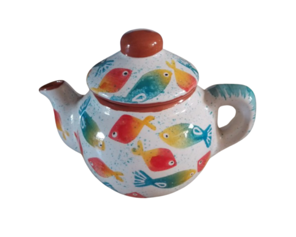 Bule de chá em cerâmica pintado à mão decoração peixinhos (52)