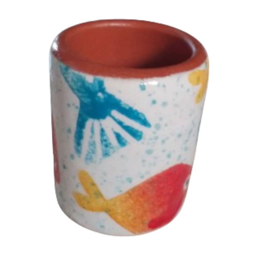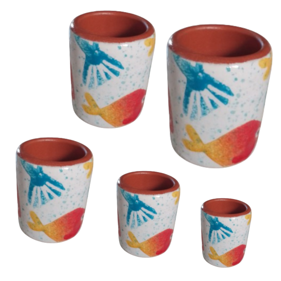 Copo em cerâmica pintado à mão decoração peixinhos, disponível em vários tamanhos, selecione o tamanho pretendido na opção de escolha abaixo: