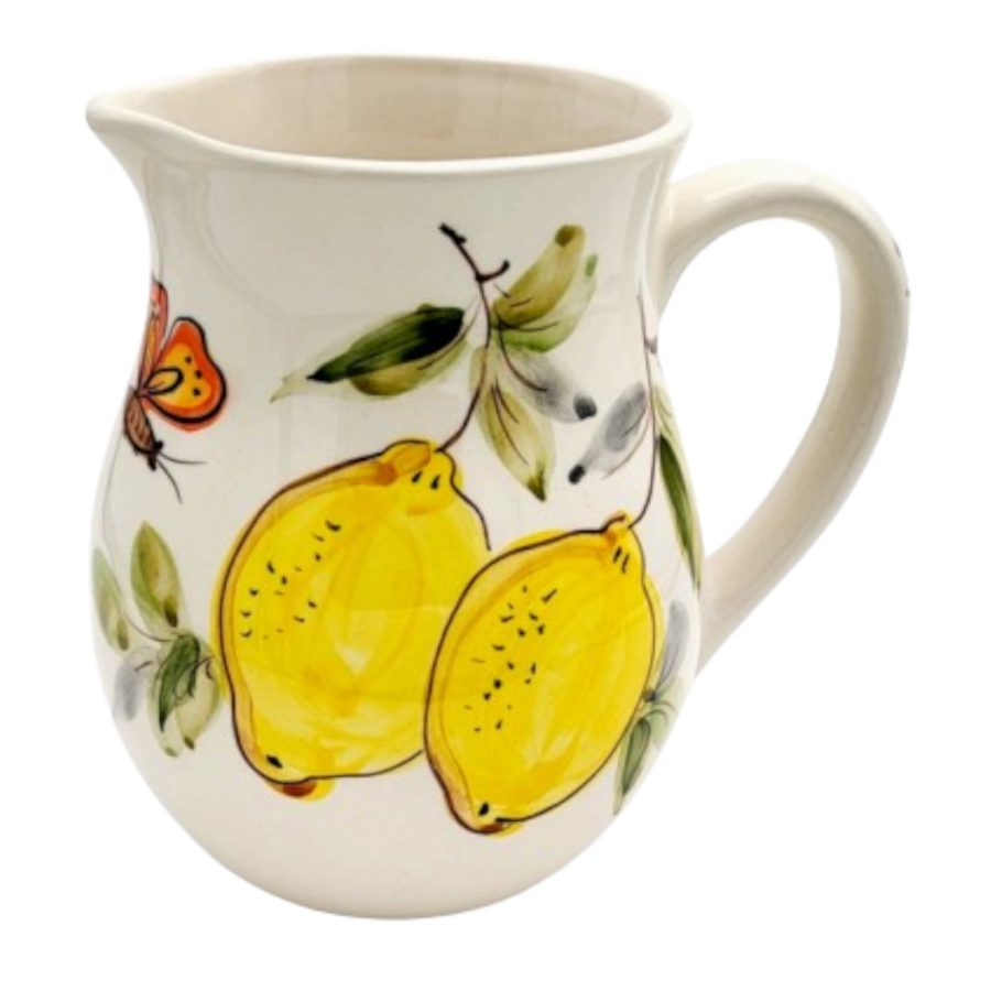 Jarro barriga em faiança pintado à mão decoração Limões