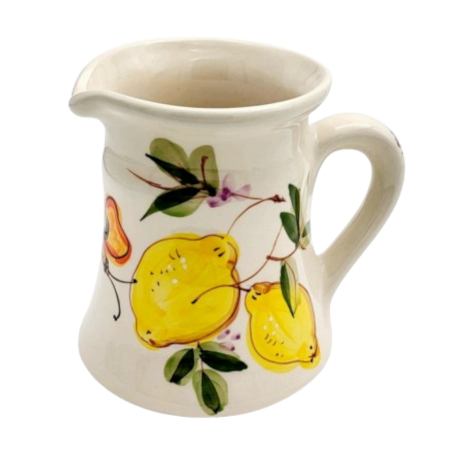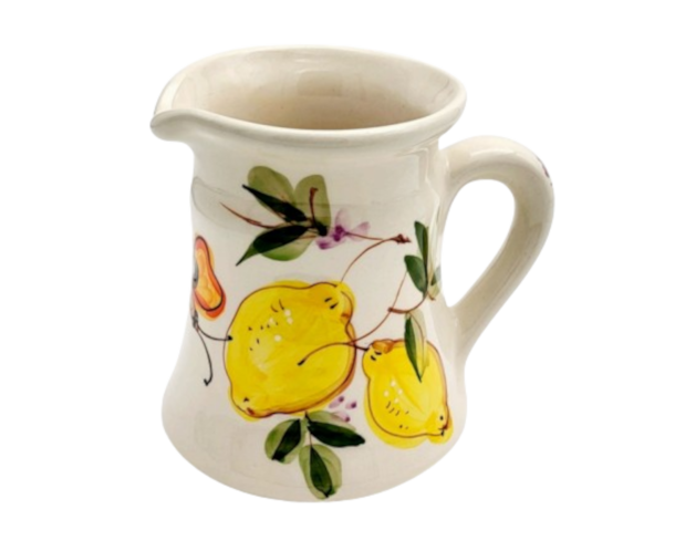 Jarro de mesa direito pequeno em faiança pintado à mão, decoração limões