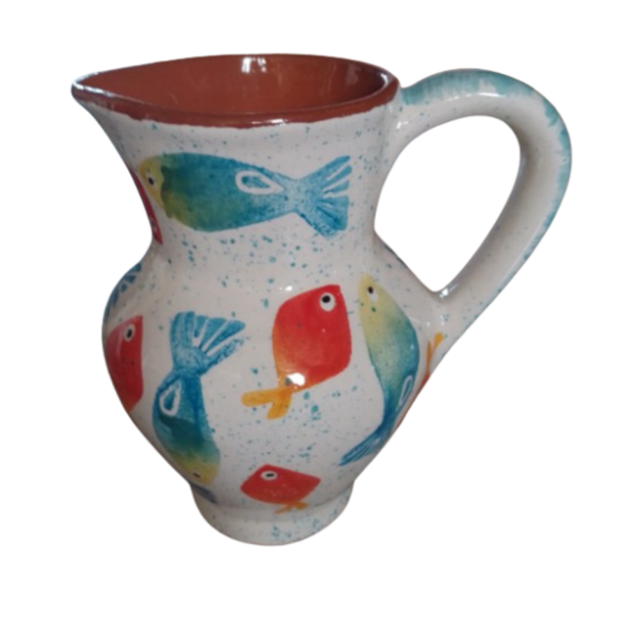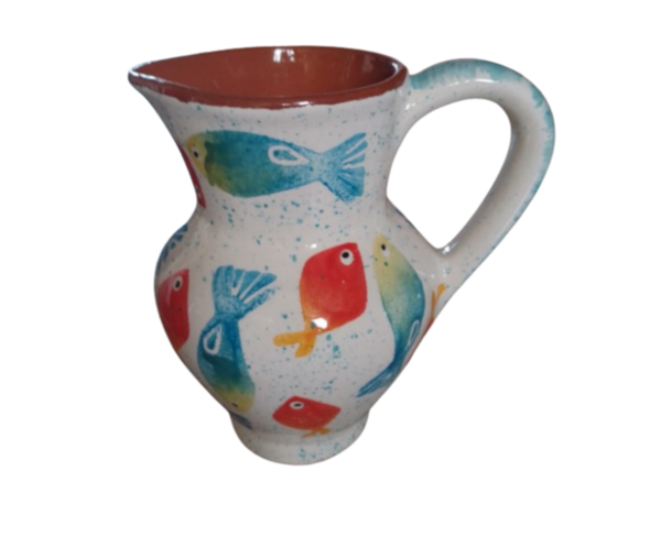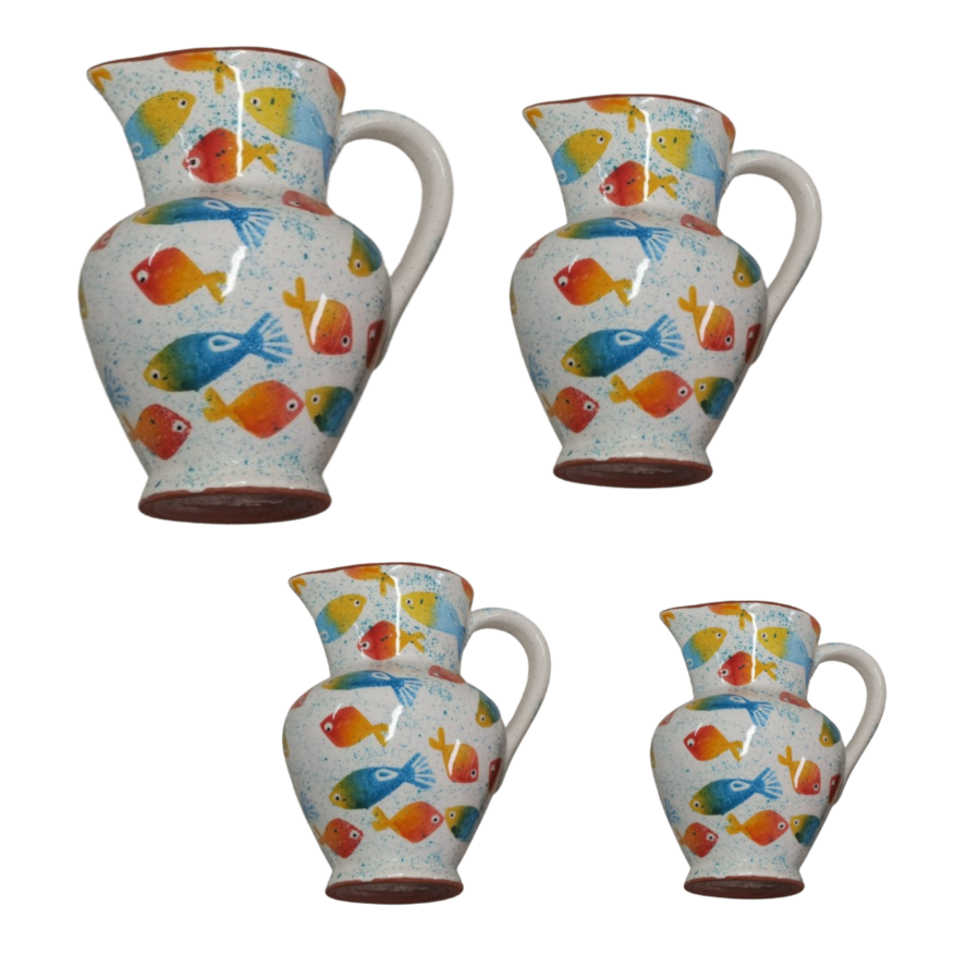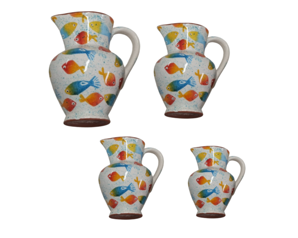 Jarro pipa em cerâmica pintado à mão decoração peixinhos (52), disponível em vários tamanhos, selecione o tamanho pretendido na opção de escolha abaixo: