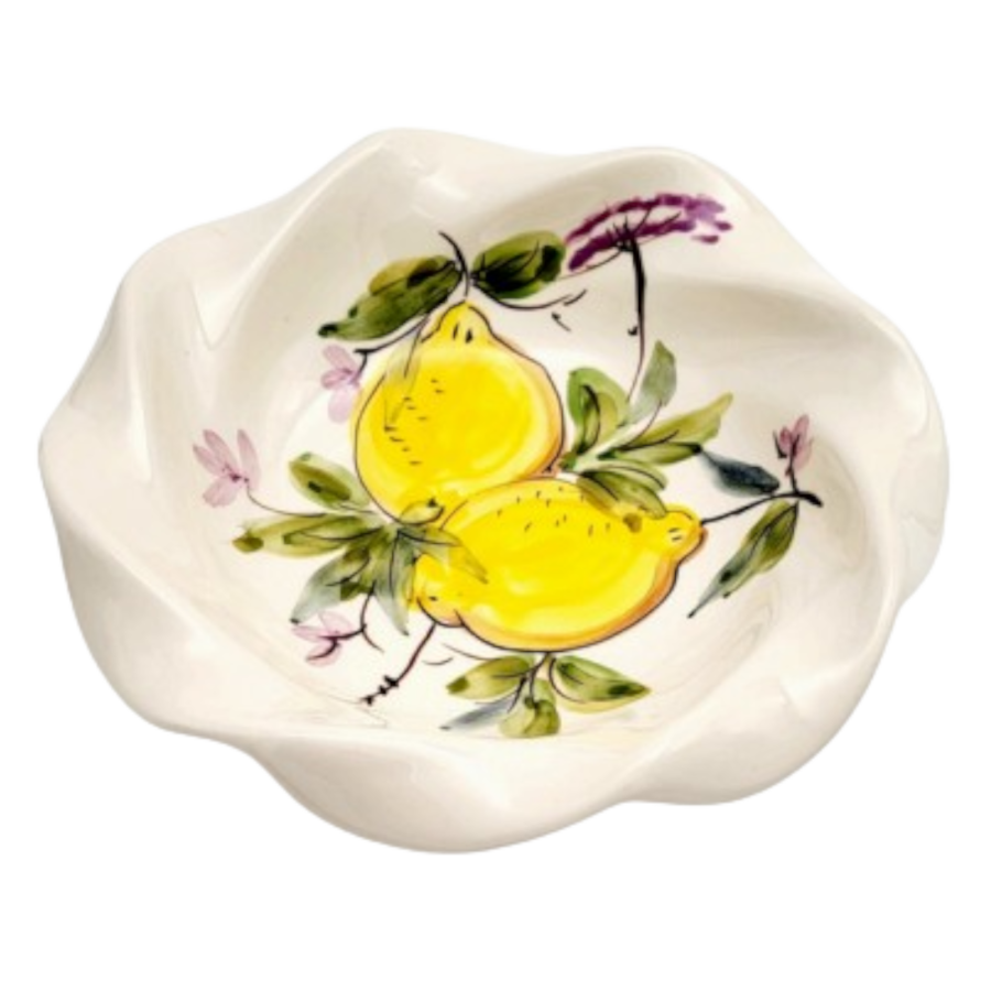 Prato taça em faiança pintado à mão decoração Limões