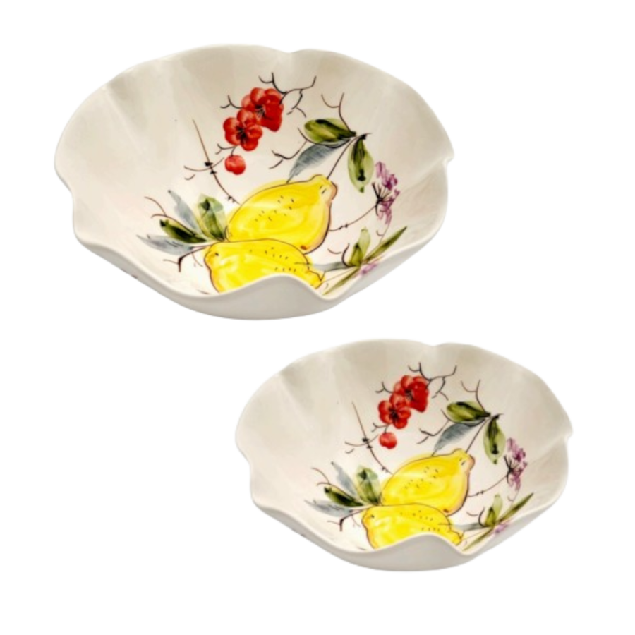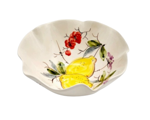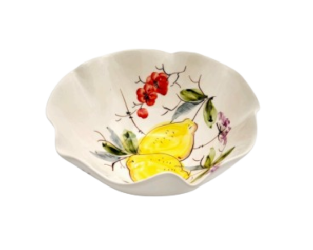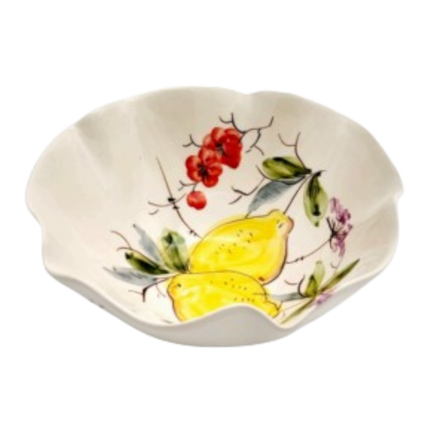 Taça ondulada em faiança pintada à mão decoração limões, disponível em dois tamanhos, selecione o pretendido na opção de escolha abaixo: