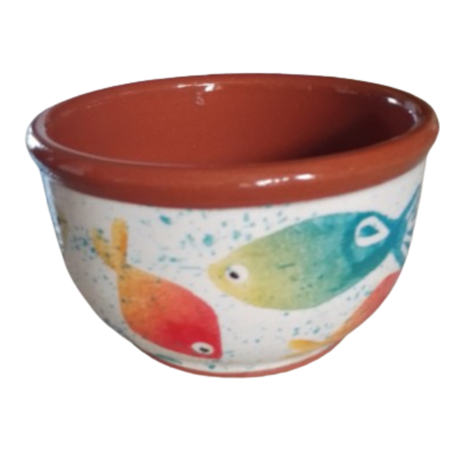 Tigela alta em cerâmica pintada à mão decoração peixinhos (52)