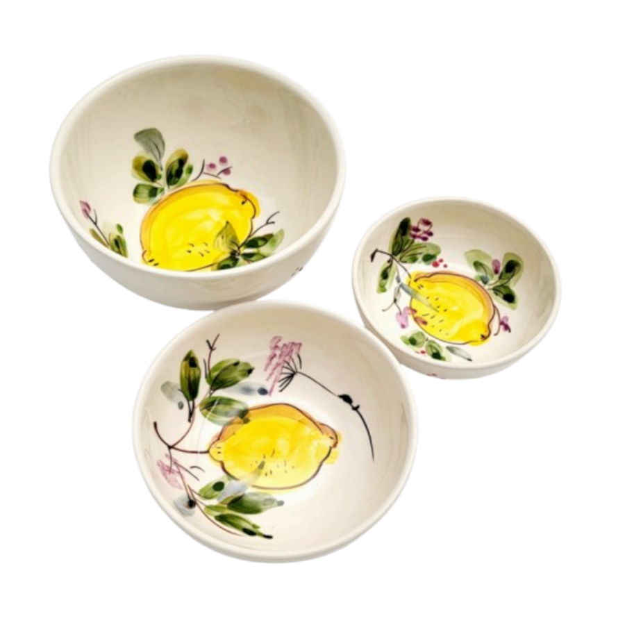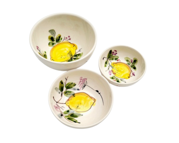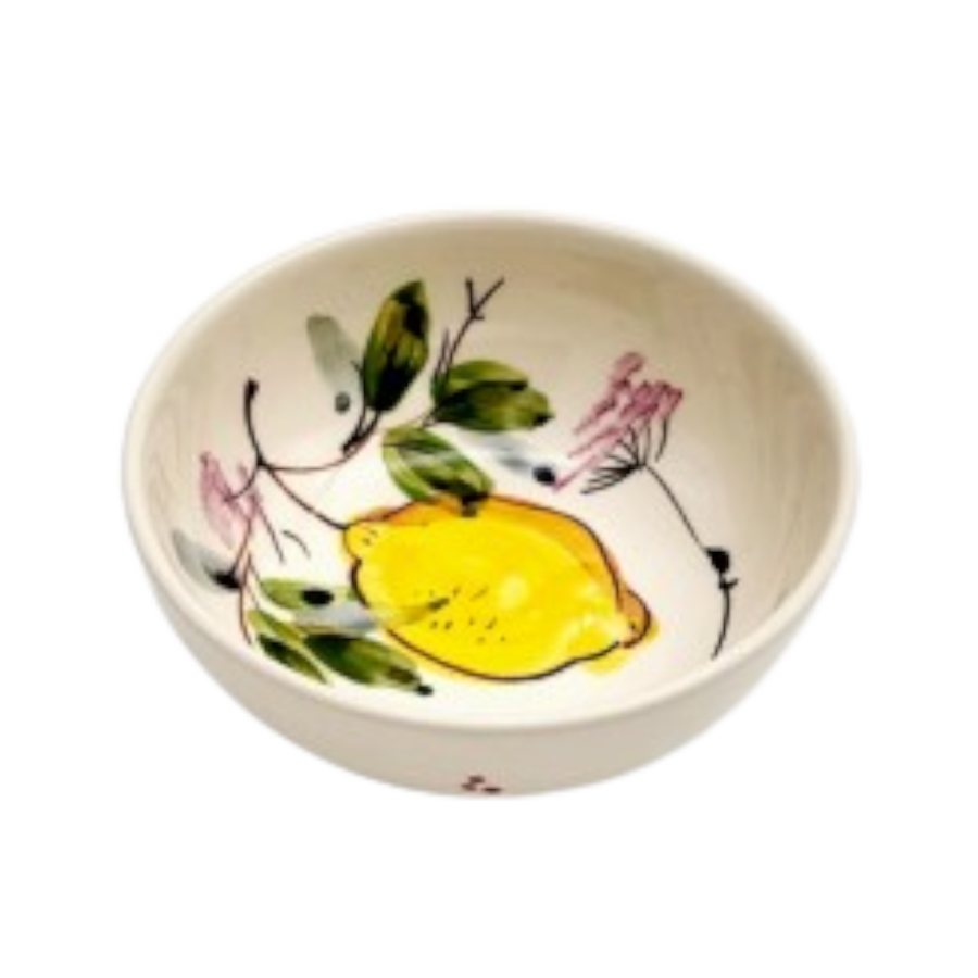 Tigela / taça em faiança pintada à mão decoração Limões, disponível em três tamanhos diferentes, selecione o pretendido na opção de escolha abaixo: